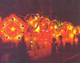 A parol or lantern is the symbol of the Star of Bethlehem, displayed on windows to light the way of the Kings and to signify the birth of Jesus Christ. The traditional parol is made with a skeleton of bamboo strips covered with transparent, onion-skinned paper. Modern innovations include dancing lights, capiz shells & the use of colored cellophane.